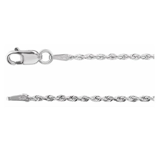 16" Sterling Silver 1.3mm Diamond Cut Rope chain with a lobster claw clasp
