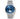 Blue satin sun-brushed dial with applied numerals and moon phase indicator