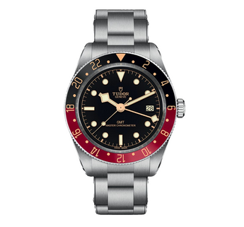 24-hour bidirectional rotatable bezel in stainless steel with black and burgundy anodised aluminium insert