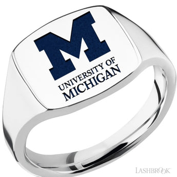 The Collegiate Collection University of Michigan Medium Cushion Cobalt Chrome Signet Ring with Blue Accent
