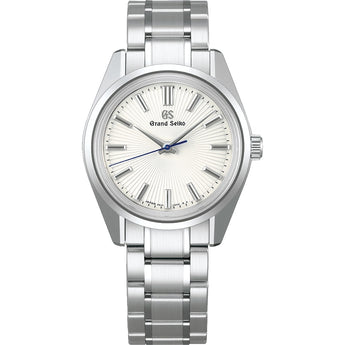 Stainless Steel Grand Seiko Mechanical Watch. The Watch Features A Power Reserve Up To 72 Hours, Sapphire Crystal With An Anti-Reflective Coating On The Inside, Light White Dial With Stick Markers, Stainless Steel Satin/Brushed Bracelet