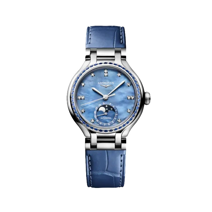 The LONGINES PrimaLuna collection embodies elegance and femininity. Crafted with meticulous attention to detail, its celestial influence is reflected in graceful curves and delicate lines. Whether adorned with diamonds, sapphires, or featuring minimalist dials, each LONGINES PrimaLuna timepiece radiates a beauty that transcends fleeting trends.