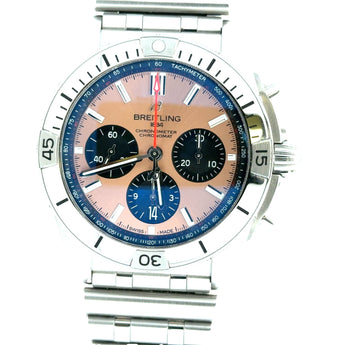 There Is Nothing Subtle About The Presence Of The Breitling Chronomat (AB0134101K1A1). Built With Aviation In Its Bloodstream, Its Bold Chronograph Registers, Commanding Case Profile, And Finely Tuned Automatic Movement Create An Energy That Feels Ready For Ascent At Any Moment. Every Detail Is Purposeful, From The Crisp Dial Execution To The Confident Weight On The Wrist. Complete With Its Original Box And Papers And Protected Under Factory Warranty Through 2028, This Is More Than A Modern Breitling, It Is A Statement Of Momentum. Its Arrival At Lewis Jewelers Feels Less Like Placement And More Like Alignment, Where Performance Driven Excellence Naturally Meets Its Next Horizon.